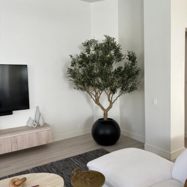 Olive Tree in Matte Black 30″ Globe Planter